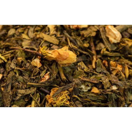 W świecie herbat mało co może się równać z delikatnym zapachem jaśminu. Harmonijny, kojący i elegancki, doskonale łączy się naszą propozycją herbaty zielonej Yunnan. Kompozycja daje efekt lekko pobudzający (za sprawą zielonej herbaty), ale i kojący dzięki aromatycznym płatkom jaśminu. Doskonała, gdy potrzebne są zarówno skupienie jak i spokój.