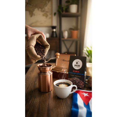 Kuba Serrano Superior w odróżnieniu od innych kaw karaibskich rośnie stosunkowo nisko, co sprawia że ma wyjątkowo czysty profil smakowy oraz niską kwasowość. Natomiast dzięki sąsiednim uprawom najróżniejszych gatunków roślin, możemy wyczuć sporo nut korzennych, orzechowe, delikatną goryczkę, nuty tytoniowe i karmelowe.