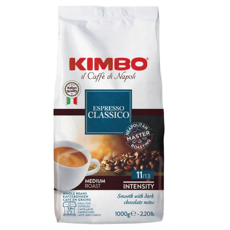 Espresso Classico to wyśmienita mieszanka ziaren gatunku Arabika pochodzących z Ameryki Południowej połączonych z wysokiej jakości Robustą. Średnie palenie, które zastosowano dla tej mieszanki dodaje kawie intensywności w smaku, eliminuje kwasowość, nadając jednocześnie delikatnej goryczki. W kawie można wyczuć nuty ciemnej czekolady i przypraw, napar tworzy na powierzchni cremę o orzechowym odcieniu. Kimbo Espresso Classico jest ucieleśnieniem charakteru i atmosfery regionu Neapolu.