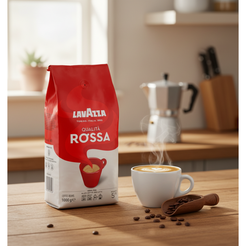 - Lavazza Qualità Rossa – klasyczna kawa ziarnista o wyjątkowym aromacie i zrównoważonym smaku. To jeden z najbardziej rozpoznawalnych produktów marki Lavazza, ceniony na całym świecie za stałą jakość i pełne, przyjemne body. Mieszanka łączy łagodne brazylijskie odmiany Arabiki z nutą afrykańskiej Robusty, co daje słodkie, czekoladowe akcenty, delikatną kremowość i długie, satysfakcjonujące wykończenie.