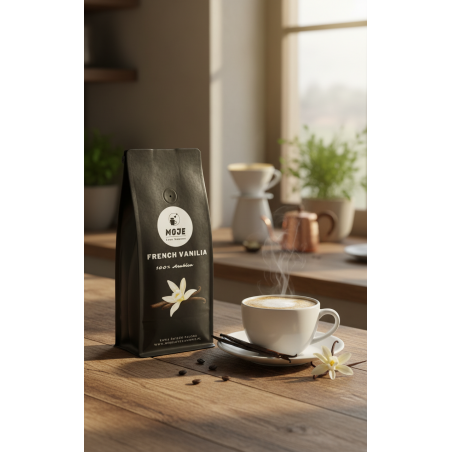 French Vanilla — kawa smakowa dostępna na mojelovekawowe.pl — to wyjątkowe połączenie intensywnego aromatu dobrej kawy z aksamitną, naturalnie słodką nutą wanilii. Jej starannie dobrana receptura zapewnia gładki, kremowy smak i długo utrzymujący się aromat, który rozgrzewa i odpręża.
