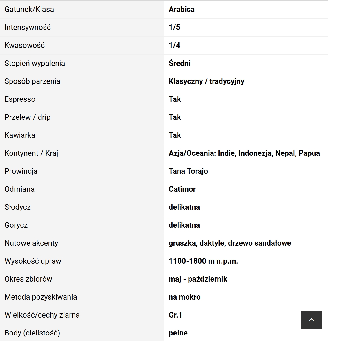 Kawa Indonezja Toraja wyróżnia się wyraźnymi nutami gruszki i drzewa sandałowego, które nadają jej wyjątkową słodycz i głębię. Jest przyjemna w smaku dzięki delikatnej słodyczy i zrównoważonemu smakowi bez nadmiernej cierpkości. Ma bogaty i syropowy charakter, co oznacza, że kawa jest pełna i treściwa